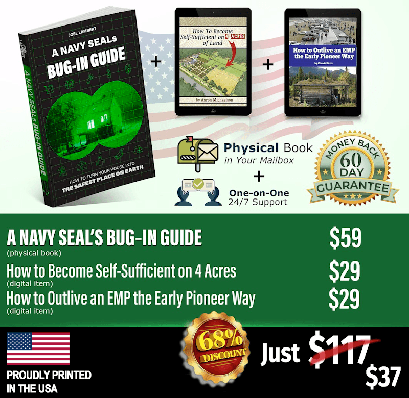 A Navy SEAL’s Bug-In Guide will help you prepare for any kind of crisis, including the most severe ones, like an EMP, civil war, or a full-blown economic meltdown. Having it by your side is the best insurance policy you can buy for your family.